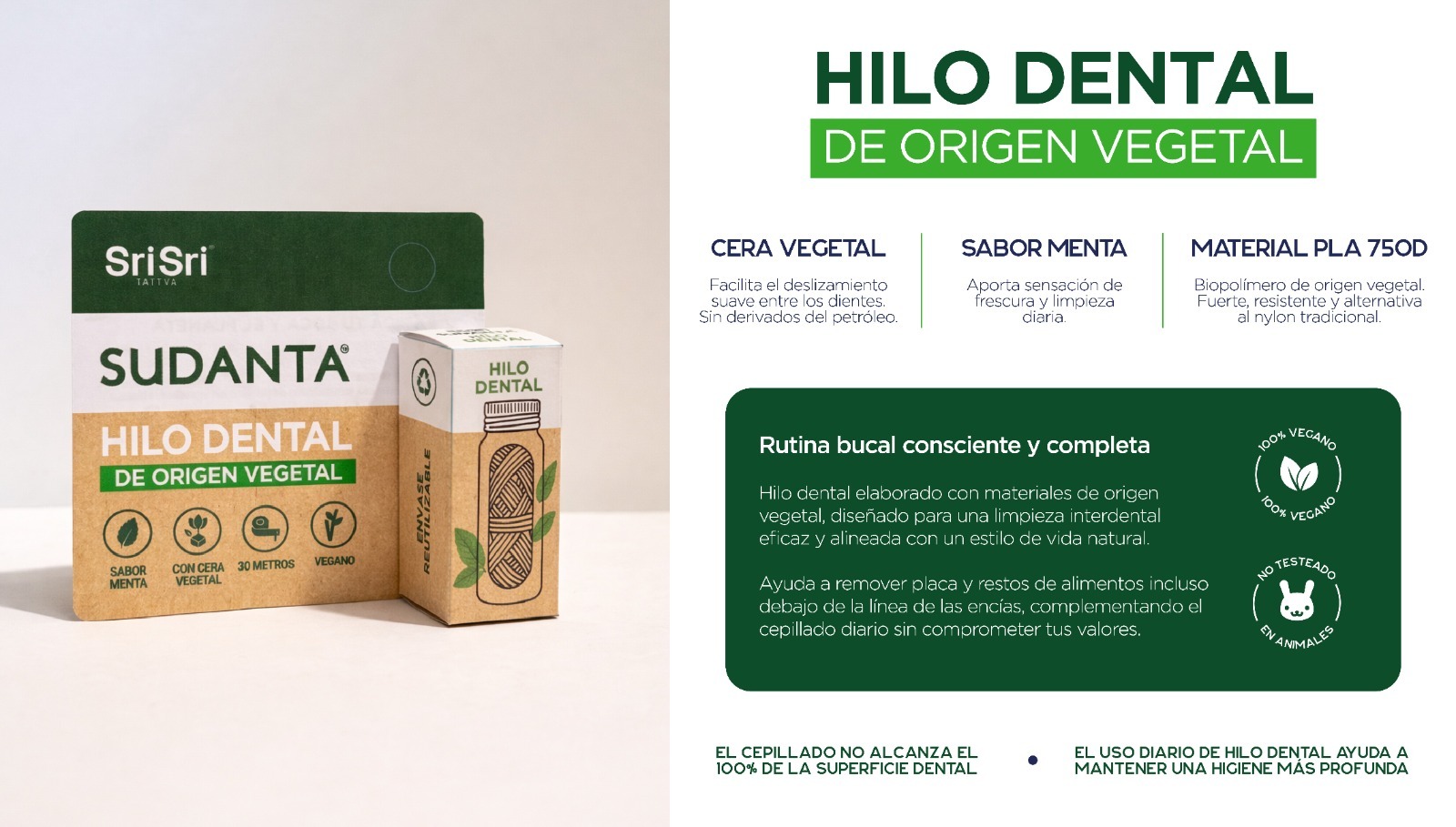 El Hilo Dental Sudanta está elaborado con PLA de origen vegetal, un material derivado del maíz, pensado para ofrecer resistencia y eficacia sin recurrir al nylon tradicional..jpeg)